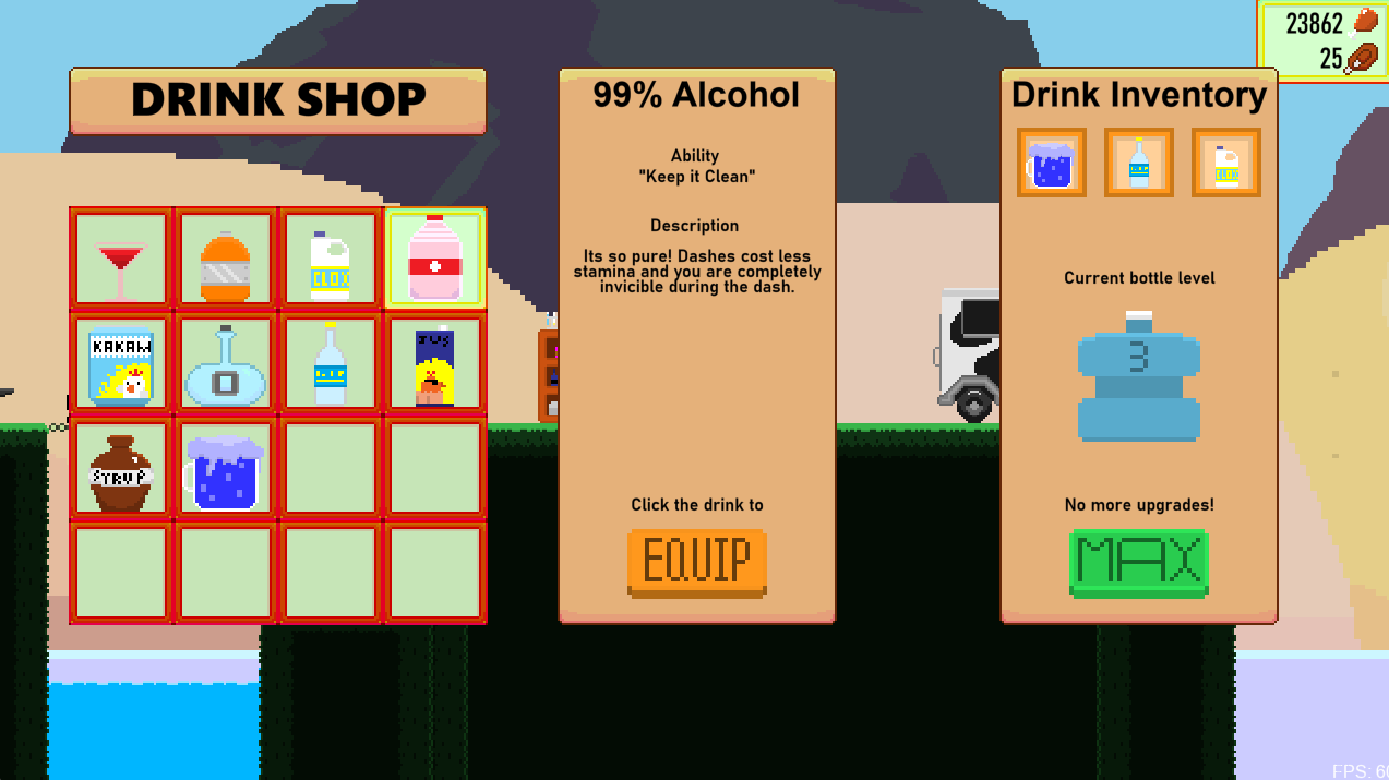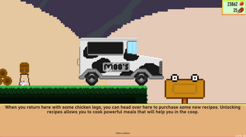 Into The Coop is a fast paced, action packed, food cooking platformer roguelite where you must battle your way through the Coop, fighting different chickens and enemies. While fighting through the coop, you will gain food items that you can cook to create delicious meals to boost your power! Dying will cause you to lose your progress, except for Chicken Legs! Chicken Legs are a currency you collect when you kill chickens and can be used to buy drinks and recipes to make you stronger the next time you enter the coop! Are you strong enough to cook, slash and dash through the coop?